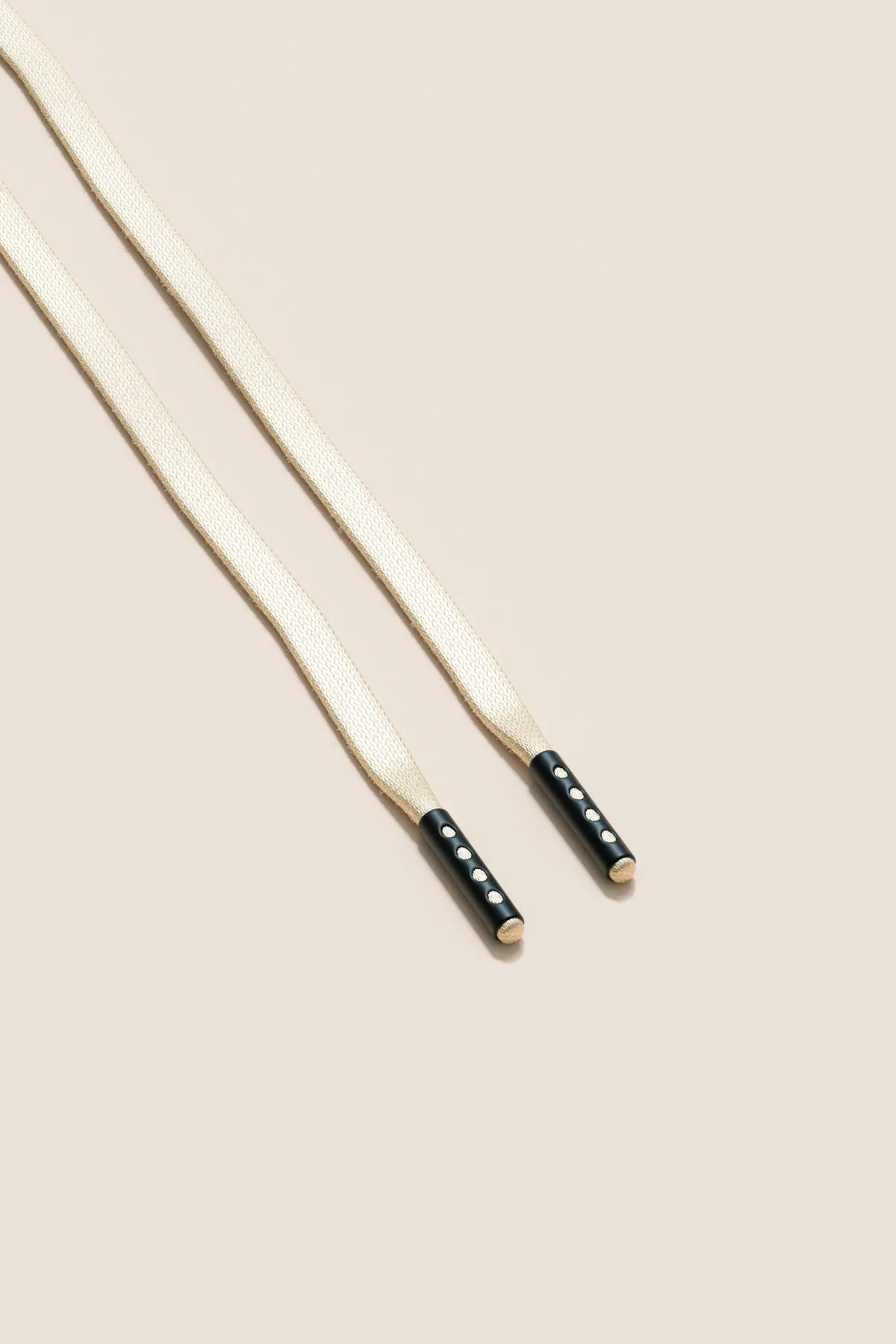 Metal aglets in 6 unique finishes (Nickel - Brass - Gold - Rosé Gold - Black Nickel - Matt Black) according to your liking. Keep it calm with aglets in brass and matt black, or be brave with shinier aglets in rosé gold or nickel.